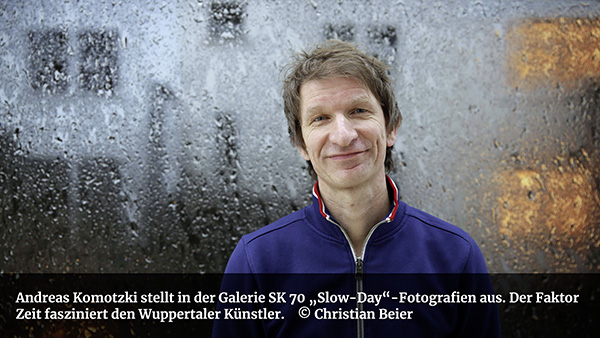 Aus über 70 „Slow-Day“-Fotografien präsentiert er in der Galerie SK eine Auswahl: die meisten als „Skizze“ in kleinem Format. Zuvor, beispielsweise in der Serie „Home“, hat Komotzki ausschließlich in Schwarz-Weiß gearbeitet. Der Faktor „Zeit“ fasziniert ihn: Augenblicke einer Lebensreise.